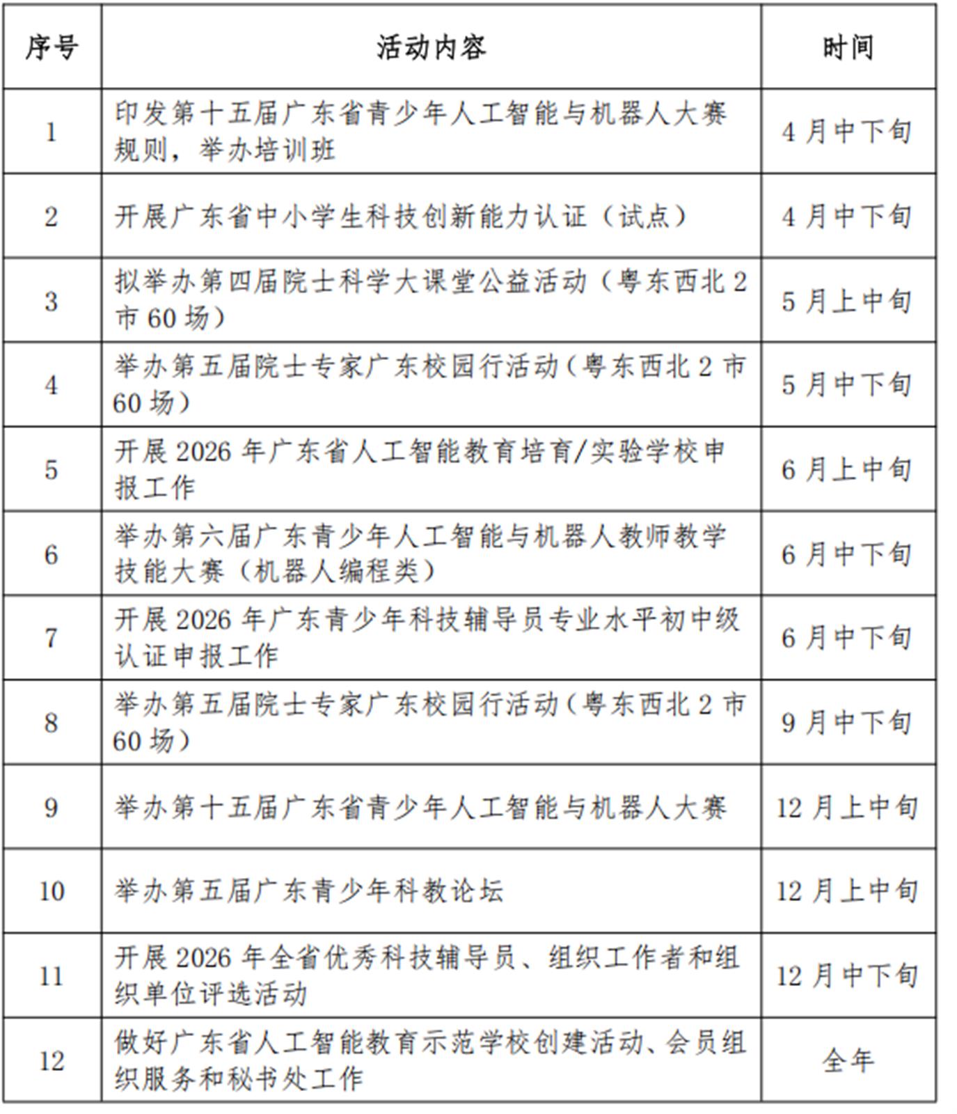 为了便于地市学校、科教机构安排工作,现将2026年协会主要活动安排通告如下。或有微调,敬请关注协会网站或微信公众号最新资讯。