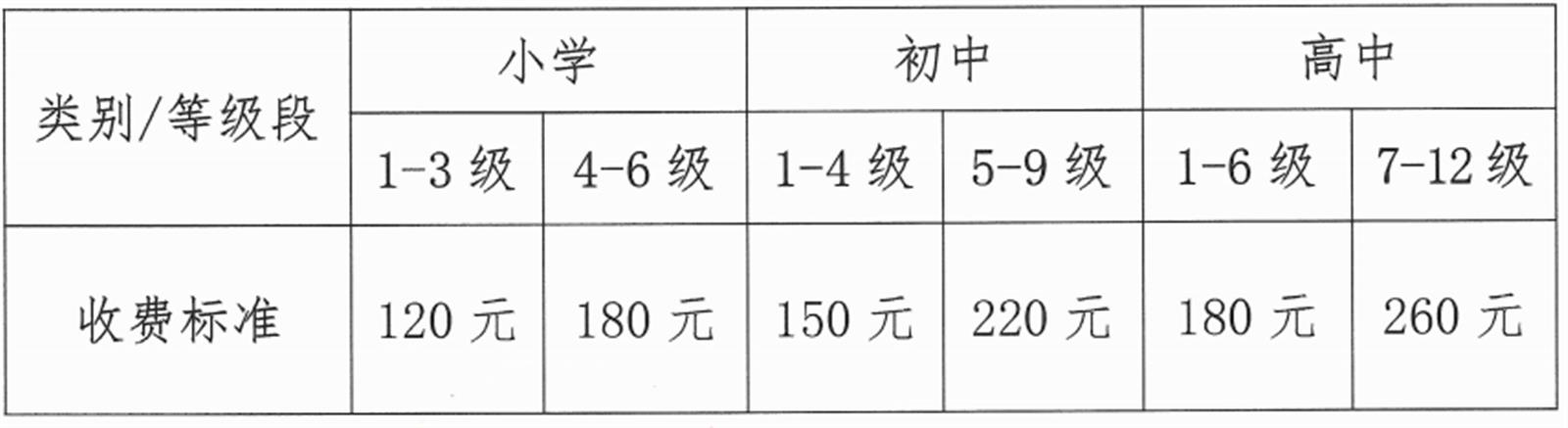 (三)补考费:素养测评不合格需补考者,缴纳50元/人。