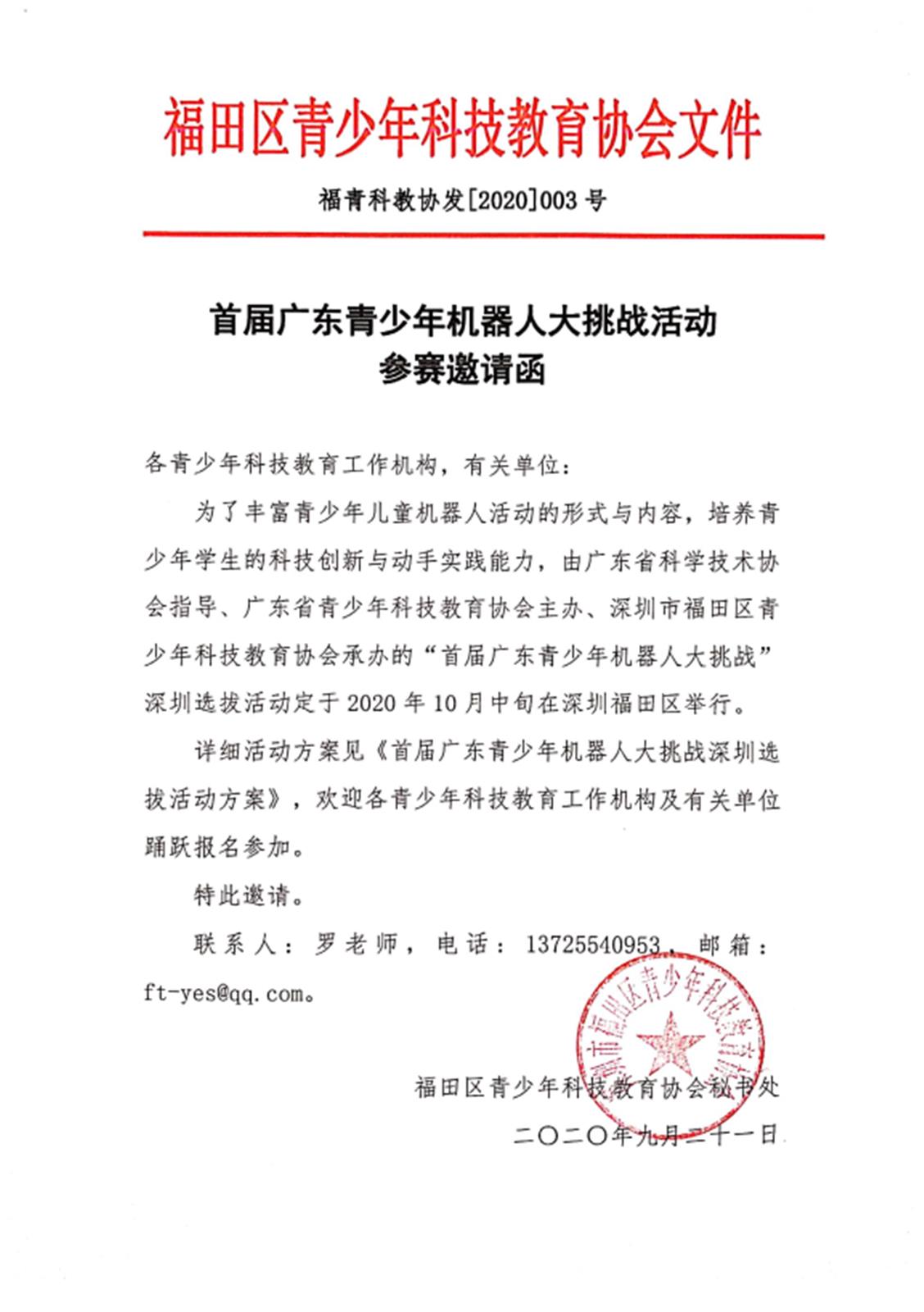 首届广东青少年机器人大挑战活动参赛邀请函