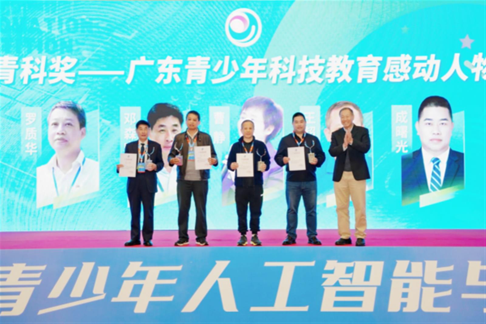 为弘扬科技教育奉献精神,论坛延续“青科奖”——广东青少年科技教育感动人物评选活动,对罗质华、邓森宏、曹静、王超荣、成曙光等5名杰出贡献者进行表彰,并授予13所学校2025年广东省人工智能教育实验学校、36所学校人工智能教育培育学校称号,进一步夯实了科教生态的基层力量。