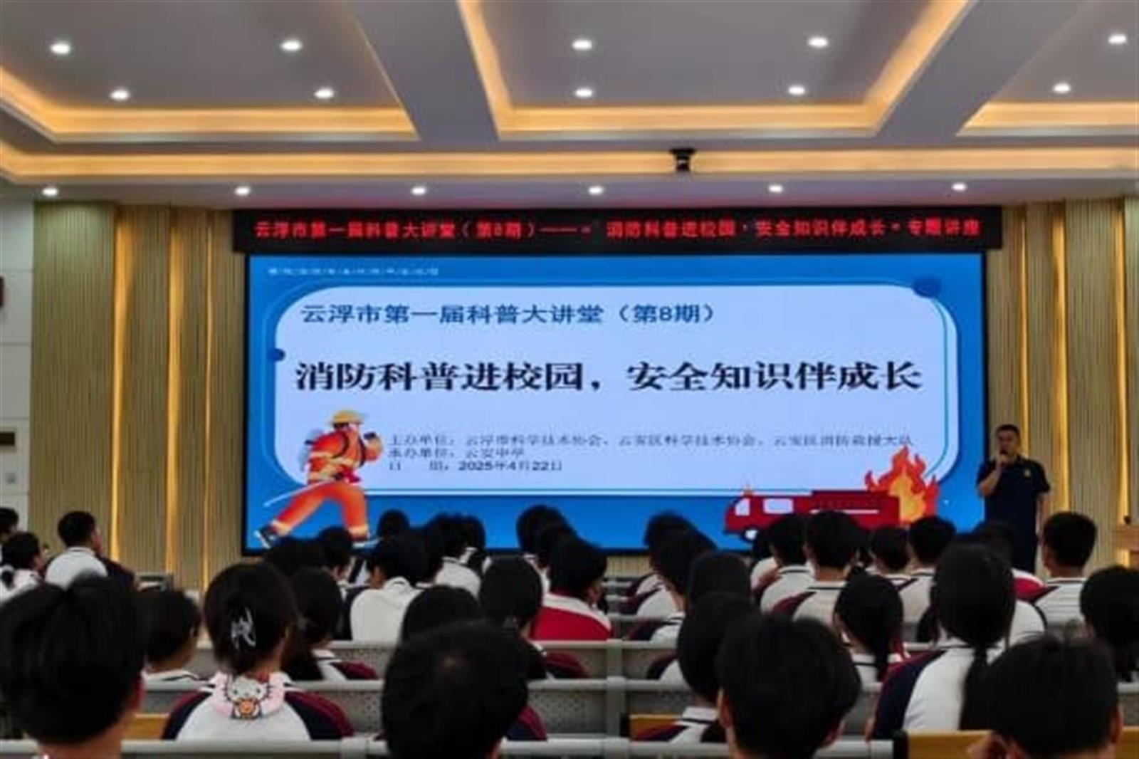 为切实提升校园师生的消防安全意识和自防自救能力,进一步营造良好的校园消防安全环境,4月22日,云浮市科协、云安区科协、云安区消防救援大队联合在云安中学举办云浮市第一届科普大讲堂(第8期)——“消防科普进校园,安全知识伴成长”专题讲座,云安中学200多名师生参加活动。