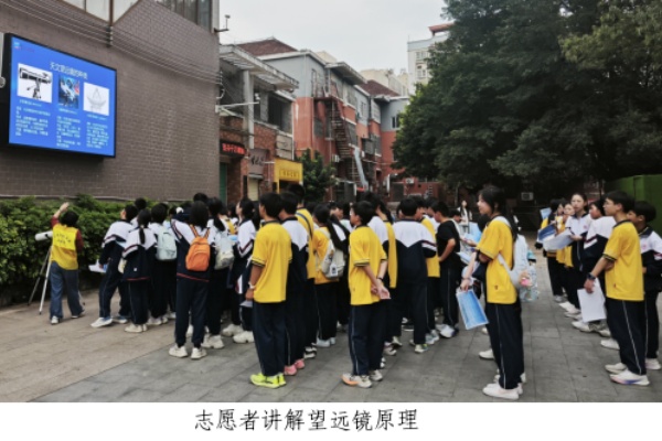 此次活动的亮点是特设的望远镜观测体验区。志愿者用通俗易懂的言语,让学生理解透镜成像、焦距调节等光学原理。尽管是白天,无法观测星辰,但通过望远镜观察远方景物,当远处的楼宇清晰地“拉近”眼前时,抽象的原理瞬间变得生动可感,引得学生们惊叹连连。