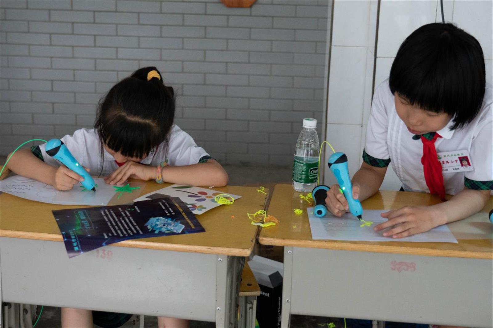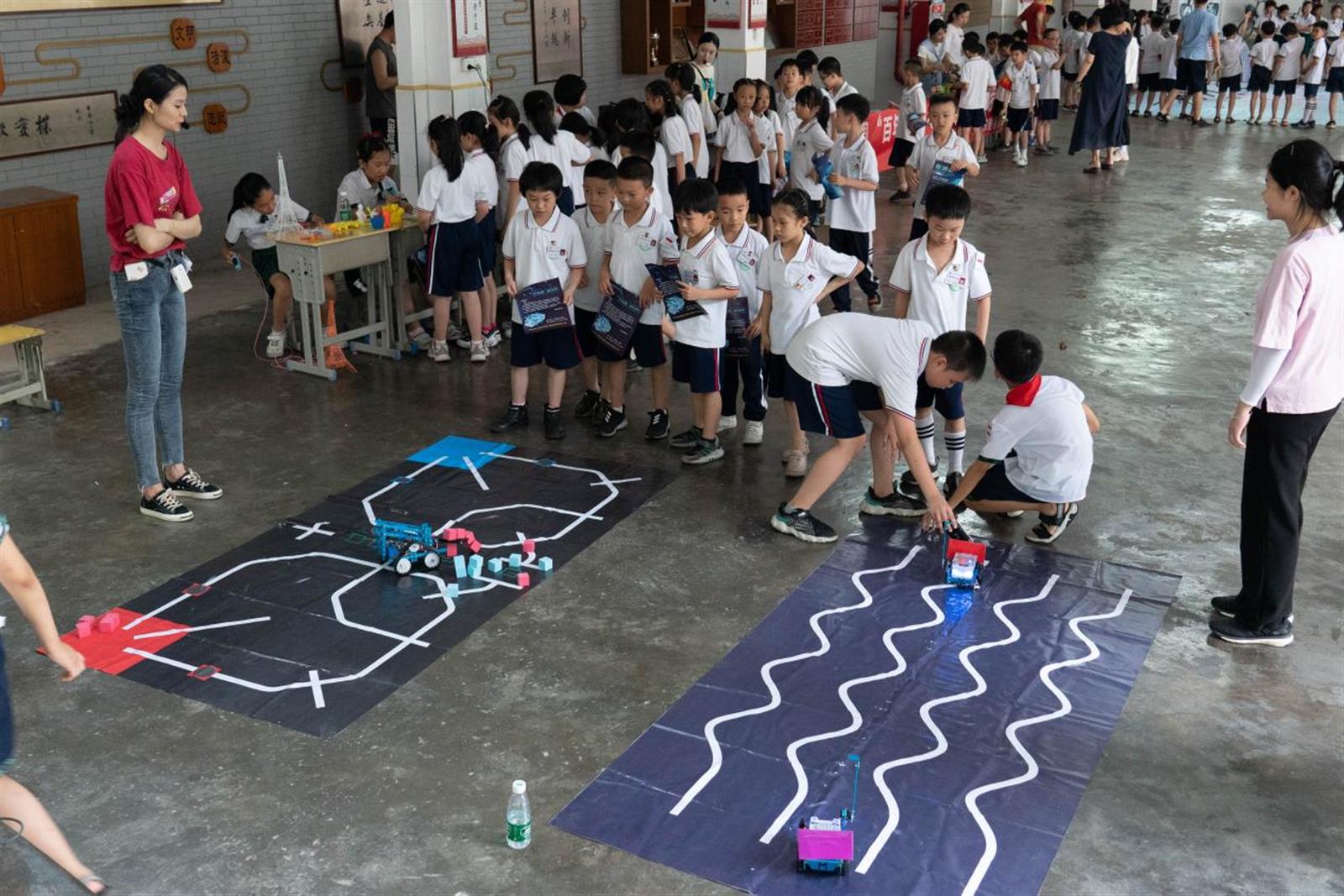 在3D打印笔体验区,同学们通过在纸膜上绘图,通过2D到3D的转换,加深孩子对3D空间的认识,培养感知力和逻辑思维能力,也可以通过自己天马行空的想象力,创作出自己的作品。通过3D打印机,建立模型,完成埃菲尔铁塔、牌坊街牌坊、毛泽东雕塑、卡通动画人物等;通过3D打印笔,学生在现场完成花束、秋千、杯子等作品。在编程机器人体验区,同学们通过编写程序,让机器人通过超声波、板载按钮、点阵屏等元器件,完成设定的相关动作,感受编程的魅力,锻炼逻辑思维能力,跨学科学习语数英等知识。